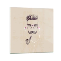Wanduhr - Glasuhr - Illustration eines Gesichts mit Schnurrbart, Brille, Pfeife und Kopfhörern - 30x30cm - Ein echter Mann? - Moderne Wanddekoration für Wohnzimmer, Küche und Schlafzimmer ARTTOR