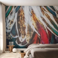Fototapete Standard Eco - Bunte Federn in detaillierter Nahaufnahme mit natürlichem Muster - 100x70cm - Geheimnisse des Fliegens - Moderne Wanddekoration für Wohnzimmer und Schlafzimmer ARTTOR