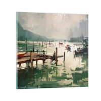 Wanduhr - Glasuhr - Ein malerischer Hafen mit Booten auf ruhigem Wasser - 30x30cm - Durchnässt in einem geschmolzenen Mond - Moderne Wanddekoration für Wohnzimmer und Schlafzimmer ARTTOR
