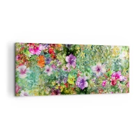 Bild auf Leinwand - Leinwandbild - Ein buntes Blumenarrangement auf grünem Hintergrund - 160x50cm - In Blumen für das Verderben - Moderne Wanddekoration für Wohnzimmer und Schlafzimmer ARTTOR
