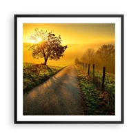 Glasbild - Bild auf glas - Eine Straße durch eine ländliche Landschaft bei Sonnenuntergang - 100x70cm - Honig-Nachmittag - Moderne Wanddekoration für Wohnzimmer und Schlafzimmer ARTTOR