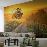 Fototapete Premium Sand - Honig-Nachmittag - Landschaft, Schotterstraße, Wiese - 400x280 cm