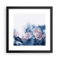 Wanduhr - Glasuhr - Eine malerische Darstellung von Bergen in Blau- und Rosatönen. - 30x30cm - Das sind die Spitzen! - Moderne Wanddekoration für Wohnzimmer, Küche und Schlafzimmer ARTTOR