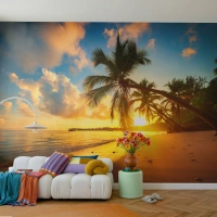 Fototapete Standard Eco - Tropischer Strand mit Palmen bei Sonnenuntergang - 100x70cm - Karibischer Traum - Moderne Wanddekoration für Wohnzimmer und Schlafzimmer ARTTOR