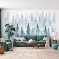 Fototapete Standard Eco - Aquarell neblige Landschaft mit einem Nadelwald - 100x70cm - In Nebel gehüllt - Moderne Wanddekoration für Wohnzimmer und Schlafzimmer ARTTOR