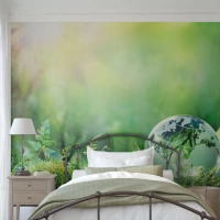 Fototapete Standard Eco - Die Glaskugel der Erde in einer grünen Landschaft - 100x70cm - Der grüne Planet - Moderne Wanddekoration für Wohnzimmer und Schlafzimmer ARTTOR