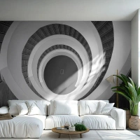 Fototapete Standard Eco - Schwarz-weiße Wendeltreppe in geometrischer Komposition - 100x70cm - Zum Kern der Sache - Moderne Wanddekoration für Wohnzimmer und Schlafzimmer ARTTOR