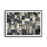 Glasbild - Bild auf glas - Eine Komposition aus Retro-Lautsprechern in Grautönen - 100x70cm - Und es ist alles in Ordnung - Moderne Wanddekoration für Wohnzimmer und Schlafzimmer ARTTOR
