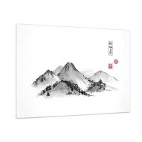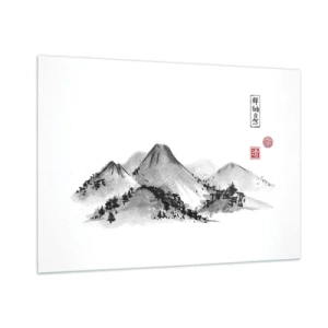 Glasbild - Bild auf glas - Eine minimalistische Berglandschaft im orientalischen Stil - 100x70cm - Unendliche Fernen - Moderne Wanddekoration für Wohnzimmer und Schlafzimmer ARTTOR