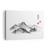 Bild auf Leinwand - Leinwandbild - Traditionelle Berglandschaft im Stil der japanischen Tuschemalerei - 100x70cm - Unendliche Fernen - Moderne Wanddekoration für Wohnzimmer und Schlafzimmer ARTTOR
