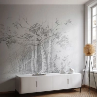 Fototapete Standard Eco - Bleistiftskizze von Birken im Wald - 100x70cm - Das Licht des Birkenwaldes - Moderne Wanddekoration für Wohnzimmer und Schlafzimmer ARTTOR