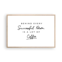 Bild auf Leinwand - Leinwandbild - Ein minimalistisches Zitat über Erfolg und Kaffee auf weißem Hintergrund. - 70x100cm - Erfolgsgeheimnis - Moderne Wanddekoration für Wohnzimmer und Schlafzimmer ARTTOR