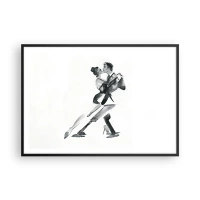 Poster in einem schwarzem Rahmen - Eine subtile Illustration eines tanzenden Paares im monochromen Stil. - 100x70cm - In einem Schlag - Moderne Wanddekoration für Wohnzimmer und Schlafzimmer ARTTOR