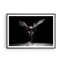 Poster in einem schwarzem Rahmen - Eine Tänzerin in Bewegung mit einem auffälligen Staubeffekt auf schwarzem Hintergrund - 100x70cm - Elfen existieren - Moderne Wanddekoration für Wohnzimmer und Schlafzimmer ARTTOR