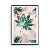 Poster in einem schwarzem Rahmen - Eine Studie von Grün auf einem rosa Hintergrund - 61x91 cm