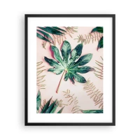 Poster in einem schwarzem Rahmen - Eine Studie von Grün auf einem rosa Hintergrund - 40x50 cm