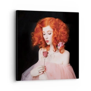 Wanduhr - Glasuhr - Eine Frau mit roten Haaren hält eine Rose - 30x30cm - Im barocken Stil - Moderne Wanddekoration für Wohnzimmer und Schlafzimmer ARTTOR