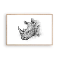 Glasbild - Bild auf glas - Künstlerisches Porträt eines Nashorns in Schwarzweiß - 70x100cm - Afrikanisches Porträt - Moderne Wanddekoration für Wohnzimmer und Schlafzimmer ARTTOR