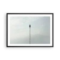 Poster in einem schwarzem Rahmen - Ein Mann auf einer Leiter, die in den Himmel ragt - 70x50cm - Erhebe dich darüber! - Moderne Wanddekoration für Wohnzimmer und Schlafzimmer ARTTOR