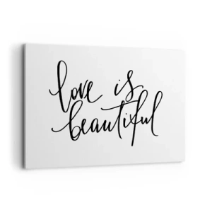 Bild auf Leinwand - Leinwandbild - Schwarze Aufschrift „Liebe ist schön“ auf weißem Hintergrund - 100x70cm - Lies und wiederhol - Moderne Wanddekoration für Wohnzimmer und Schlafzimmer ARTTOR