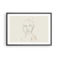 Poster in einem schwarzem Rahmen - Minimalistische Skizze eines Frauengesichts - 70x50cm - Umriss der Sinnlichkeit - Moderne Wanddekoration für Wohnzimmer und Schlafzimmer ARTTOR