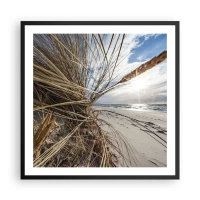Bild auf Leinwand - Leinwandbild - Ein Strand mit trockenem Gras auf den Dünen und Blick auf das Meer - 100x70cm - Ein Treffen der Elemente der Natur - Moderne Wanddekoration für Wohnzimmer und Schlafzimmer ARTTOR