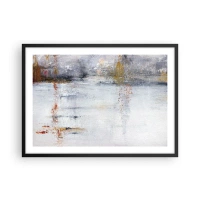 Poster in einem schwarzem Rahmen - Eine abstrakte Landschaft mit verschwommenen Akzenten in Grau und Gold. - 70x50cm - Hinter dem Luftvorhang - Moderne Wanddekoration für Wohnzimmer und Schlafzimmer ARTTOR