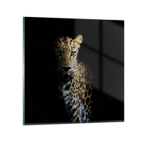 Glasbild - Bild auf glas - Ein Leopard auf dunklem Hintergrund mit intensivem Blick - 70x100cm - Dunkle Schönheit - Moderne Wanddekoration für Wohnzimmer und Schlafzimmer ARTTOR