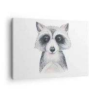Bild auf Leinwand - Leinwandbild - Adorable Portrait eines Waschbären auf weißem Hintergrund - 70x50cm - Ein Moment zum Bewegen - Moderne Wanddekoration für Wohnzimmer und Schlafzimmer ARTTOR