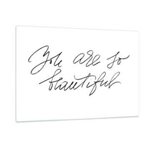 Glasbild - Bild auf glas - „Du bist so schön“-Zitat in einem eleganten, kalligrafischen Stil - 120x80cm - Glauben Sie wirklich ... - Moderne Wanddekoration für Wohnzimmer und Schlafzimmer ARTTOR