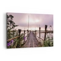 Bild auf Leinwand - Leinwandbild - Bambusbrücke über das Wasser im Morgengrauen - 100x70cm - Frieden und Ruhe Asiens - Moderne Wanddekoration für Wohnzimmer und Schlafzimmer ARTTOR