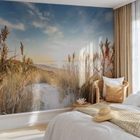 Fototapete Standard Eco - Sonnenuntergangsstrand mit Gras und Sand - 100x70cm - Nordstrand - Moderne Wanddekoration für Wohnzimmer und Schlafzimmer ARTTOR