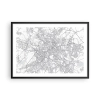 Poster in einem schwarzem Rahmen - Detaillierter schwarz-weißer Stadtplan - 70x50cm - Berliner Blume - Moderne Wanddekoration für Wohnzimmer und Schlafzimmer ARTTOR