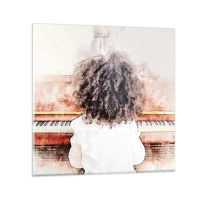 Wanduhr - Glasuhr - Ein Mädchen mit buschigem Haar am Klavier - 30x30cm - In der neuen Welt - Moderne Wanddekoration für Wohnzimmer und Schlafzimmer ARTTOR