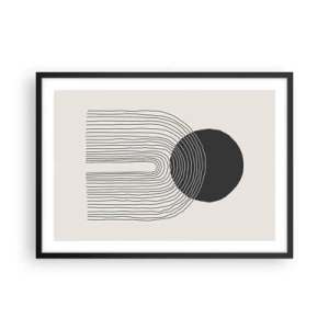 Poster in einem schwarzem Rahmen - Abstraktes Muster mit Linien und einem schwarzen Kreis auf hellem Hintergrund - 70x50cm - Zittern und Vertrauen - Moderne Wanddekoration für Wohnzimmer und Schlafzimmer ARTTOR