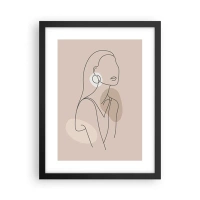 Bild auf Leinwand - Leinwandbild - Minimalistische Illustration einer Frau mit Umrissen auf beigem Hintergrund - 100x70cm - Mädchenhafte Ikone - Moderne Wanddekoration für Wohnzimmer und Schlafzimmer ARTTOR