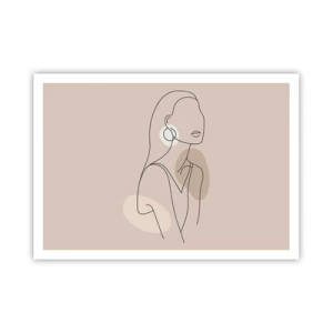 Poster - Minimalistische Illustration einer Frau mit Umrissen auf beigem Hintergrund - 100x70cm - Mädchenhafte Ikone - Moderne Wanddekoration für Wohnzimmer und Schlafzimmer ARTTOR