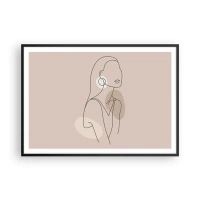 Poster in einem schwarzem Rahmen - Minimalistische Illustration einer Frau mit Umrissen auf beigem Hintergrund - 100x70cm - Mädchenhafte Ikone - Moderne Wanddekoration für Wohnzimmer und Schlafzimmer ARTTOR