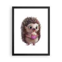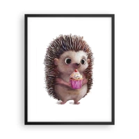 Bild auf Leinwand - Leinwandbild - Ein süßer Igel mit einem Cupcake - 100x70cm - Der Feiertag ist jeden Tag - Moderne Wanddekoration für Wohnzimmer und Schlafzimmer ARTTOR