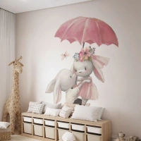Fototapete Standard Eco - Zwei süße Häschen unter einem rosa Regenschirm - 100x70cm - Das ist eben Liebe - Moderne Wanddekoration für Wohnzimmer und Schlafzimmer ARTTOR