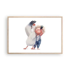 Bild auf Leinwand - Leinwandbild - Illustration eines Kindes mit einem Pelikan und einem Teleskop in der Hand - 70x100cm - Toller Reiseplan - Moderne Wanddekoration für Wohnzimmer und Schlafzimmer ARTTOR