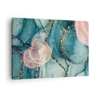 Bild auf Leinwand - Leinwandbild - Eine abstrakte Komposition in Türkis- und Goldtönen. - 70x50cm - Seidenblau, Tüllrosa - Moderne Wanddekoration für Wohnzimmer und Schlafzimmer ARTTOR