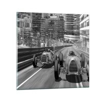 Glasbild - Bild auf glas - Monochrome Retro-Autorennen-Szene - 70x100cm - Vor langer Zeit in Monte Carlo - Moderne Wanddekoration für Wohnzimmer und Schlafzimmer ARTTOR