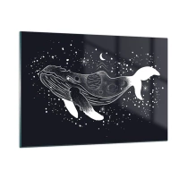 Glasbild - Bild auf glas - Grafische weiße Silhouette eines im Weltraum schwebenden Wals - 120x80cm - Im Ozean des Universums - Moderne Wanddekoration für Wohnzimmer und Schlafzimmer ARTTOR