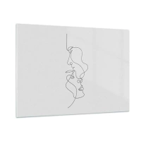 Glasbild - Bild auf glas - Eine zarte Zeichnung zweier Gesichter in einer Kontur - 100x70cm - Die Hitze bitterer Begierden - Moderne Wanddekoration für Wohnzimmer und Schlafzimmer ARTTOR