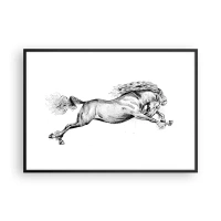 Poster in einem schwarzem Rahmen - Skizze eines Pferdes im dynamischen Galopp auf weißem Hintergrund - 100x70cm - Im Galopp festgehalten - Moderne Wanddekoration für Wohnzimmer und Schlafzimmer ARTTOR