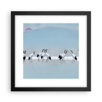 Wanduhr - Glasuhr - Eine Gruppe von Kranichen vor einem hellblauen Himmel - 30x30cm - Nach einem heißen Tag - Moderne Wanddekoration für Wohnzimmer, Küche und Schlafzimmer ARTTOR