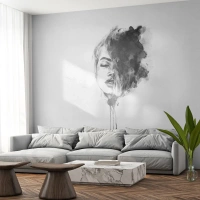 Fototapete Standard Eco - Schwarz-weißes Aquarellgemälde eines Frauengesichts im künstlerischen Stil - 100x70cm - Wovon träumt das Mädchen - Moderne Wanddekoration für Wohnzimmer und Schlafzimmer ARTTOR