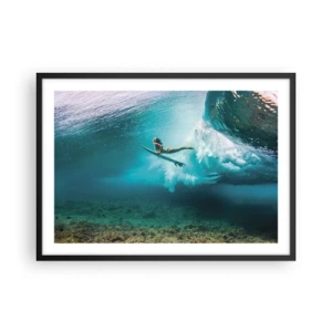 Poster in einem schwarzem Rahmen - Surfer unter einer Welle im blauen Ozeanwasser - 70x50cm - Unterwasserwelt - Moderne Wanddekoration für Wohnzimmer und Schlafzimmer ARTTOR