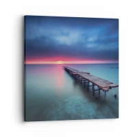Bild auf Leinwand - Leinwandbild - Ein Holzsteg, der bei Sonnenuntergang direkt aufs Meer hinausführt - 50x70cm - Zwischen Himmel und Erde - Moderne Wanddekoration für Wohnzimmer und Schlafzimmer ARTTOR